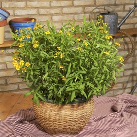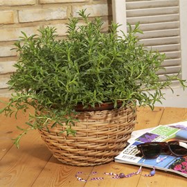 This is an aromatic, evergreen perennial bush with purple leaves and small mauve-blue flowers. It grows up to 40cm (16") high and spreads to 40cm (16") wide. The plant is native to the Balkan Peninsula.