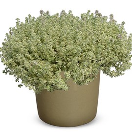 `Haifa` is an aromatic evergreen perennial with trailing growth habit. It has small pale blue flowers and green foliage. It grows up to 10cm (4") high and spreads to 50-60cm (20-24") wide. The plant is native to Europe and North Africa.