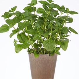`Basil` is an upright growing plant with purple-mauve flowers. It has rounded, thick, dark green foliage with a reddish-purple tinge. The plant grows up to 50cm (20”) high and spreads to 40cm (16”) in diameter.